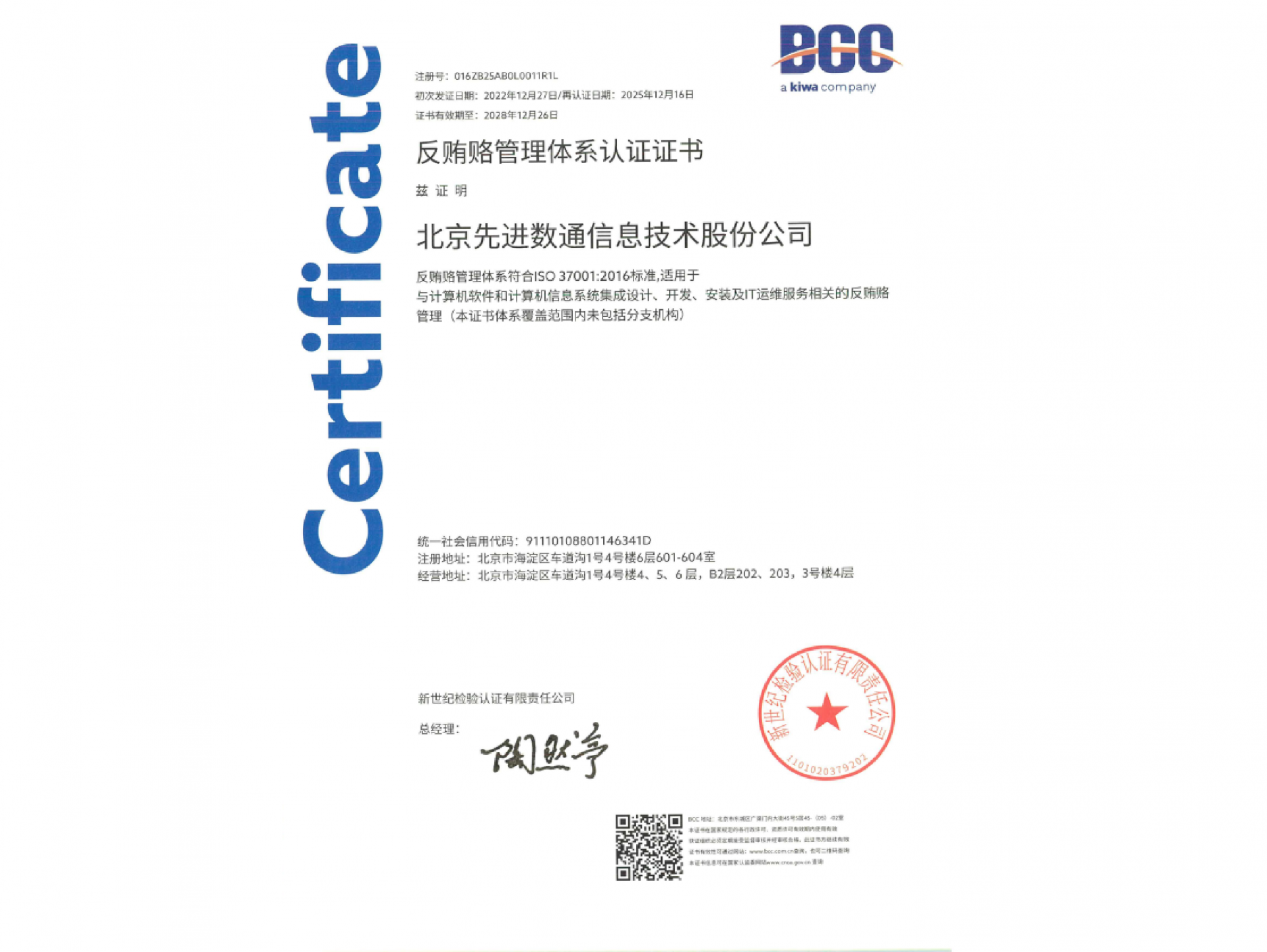 • ISO37001反贿赂管理体系认证