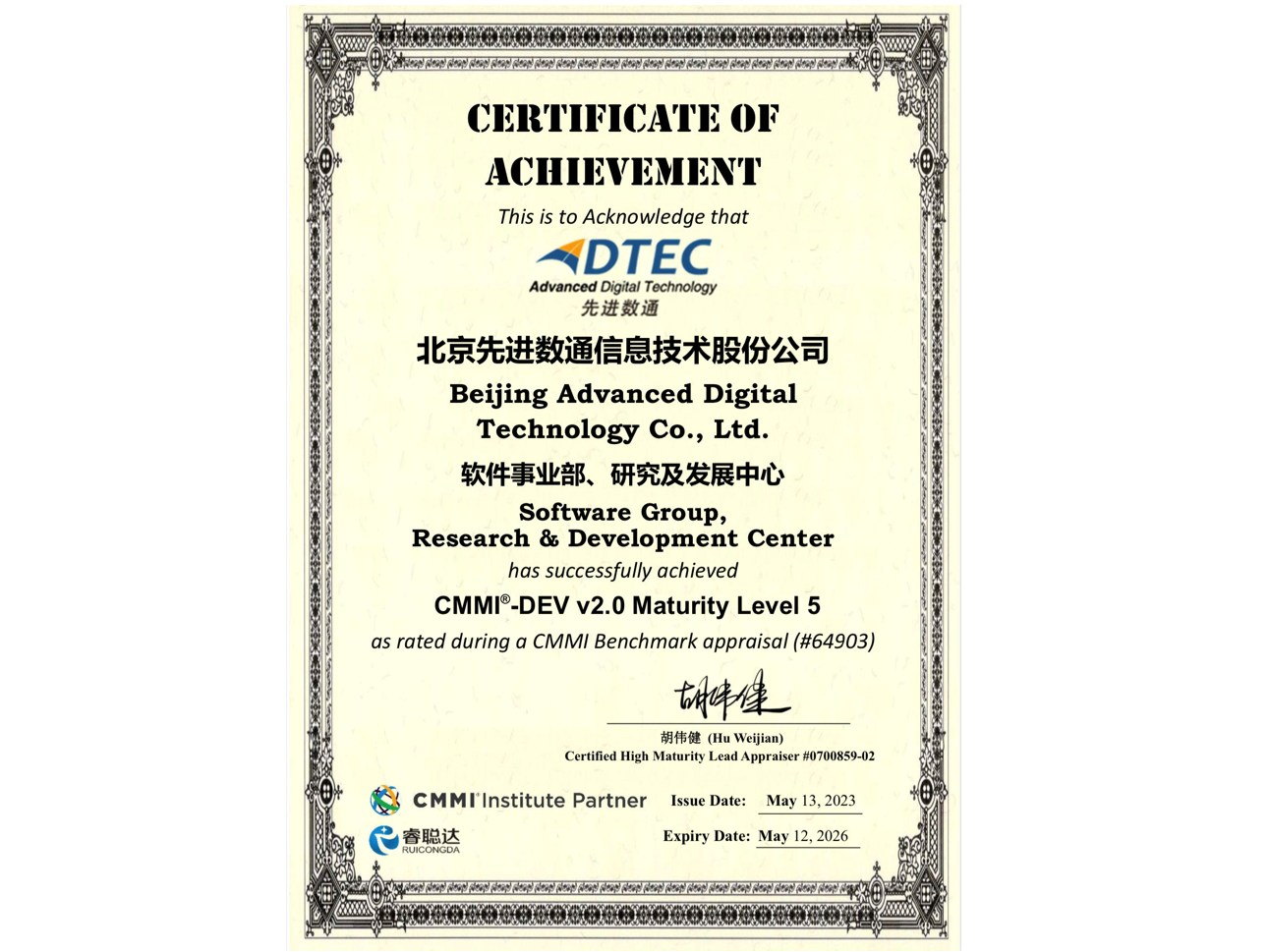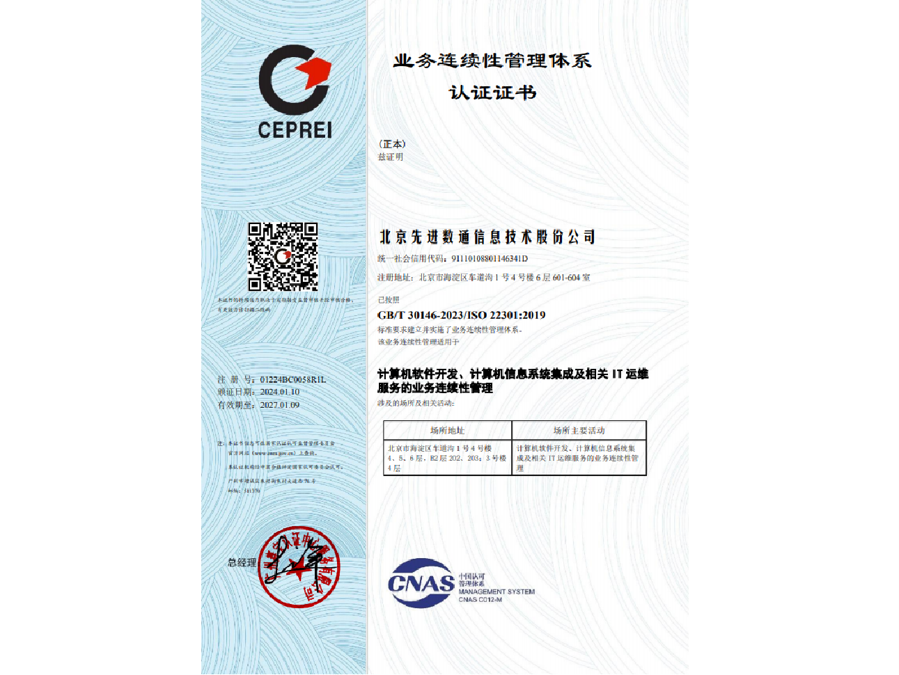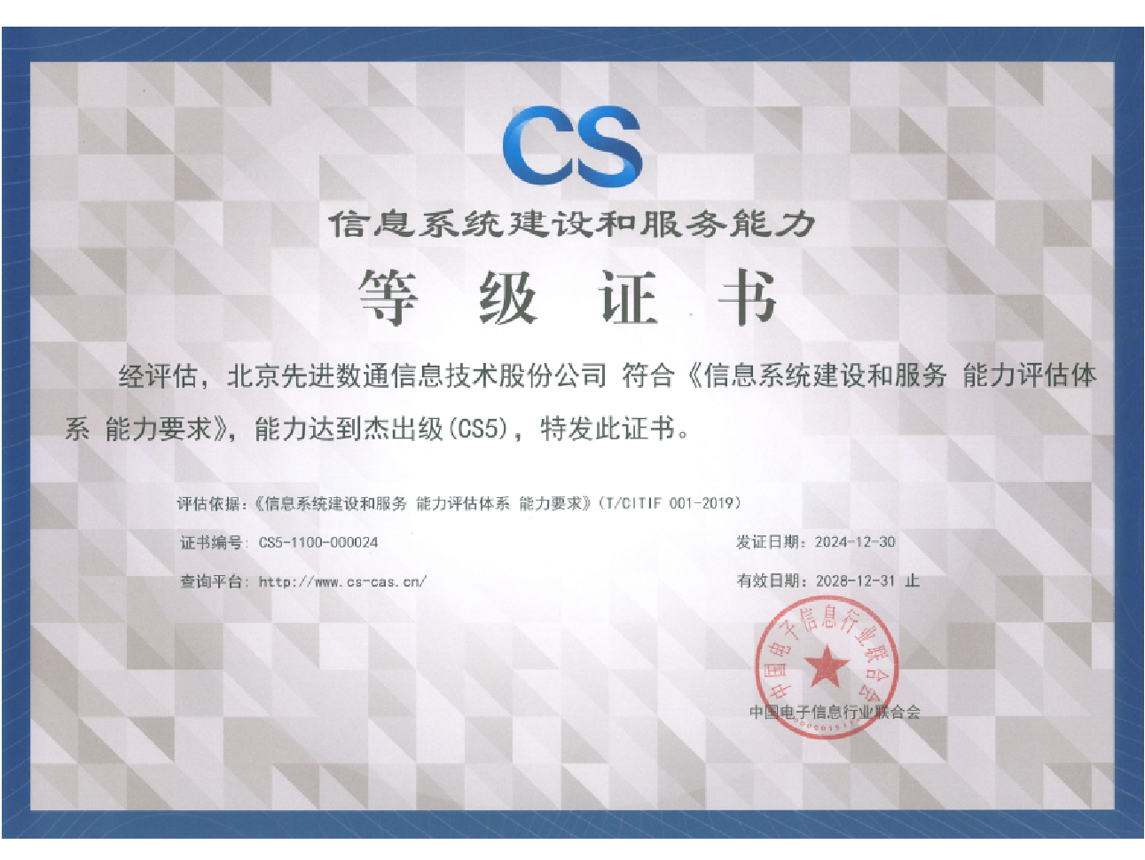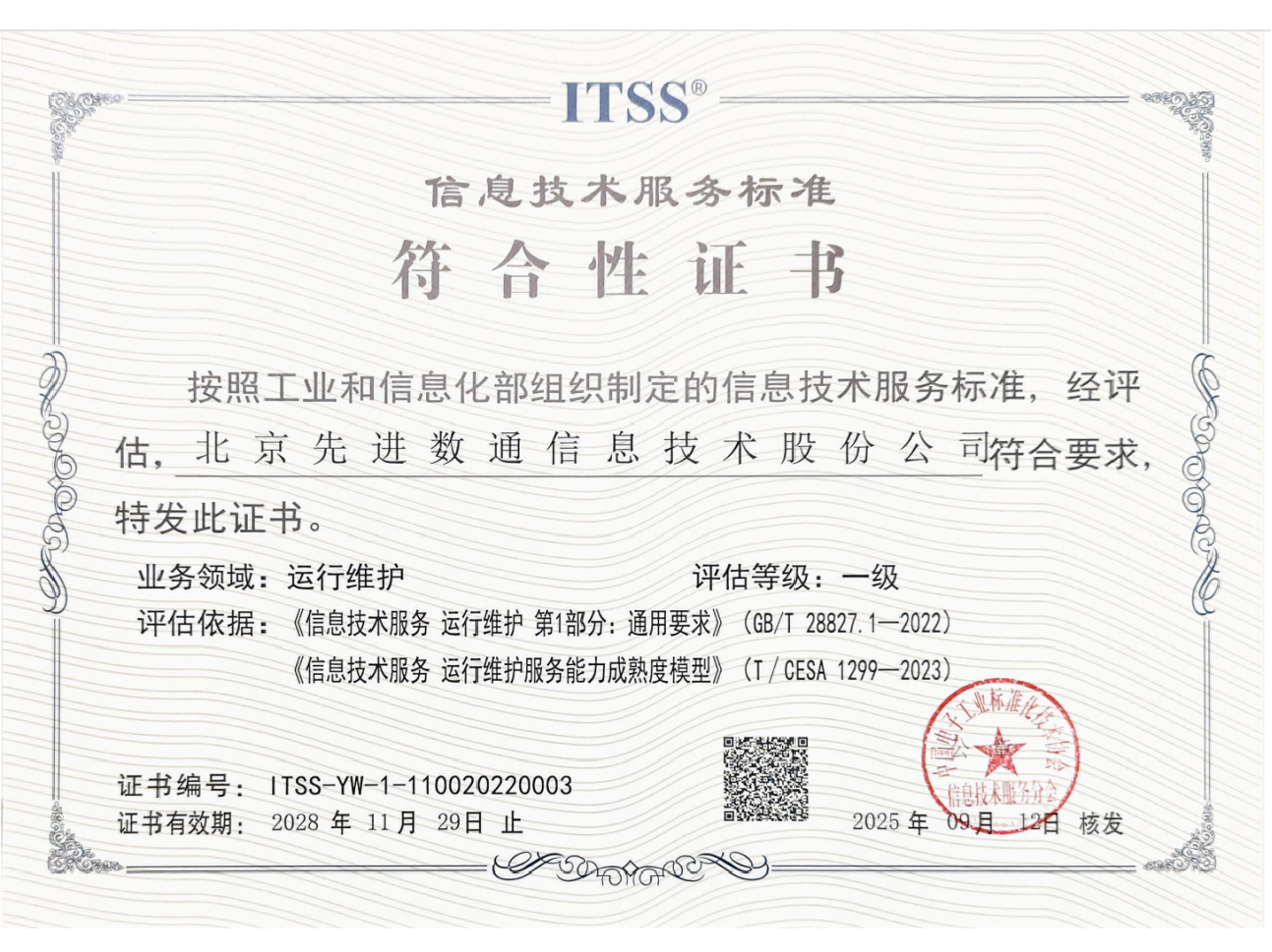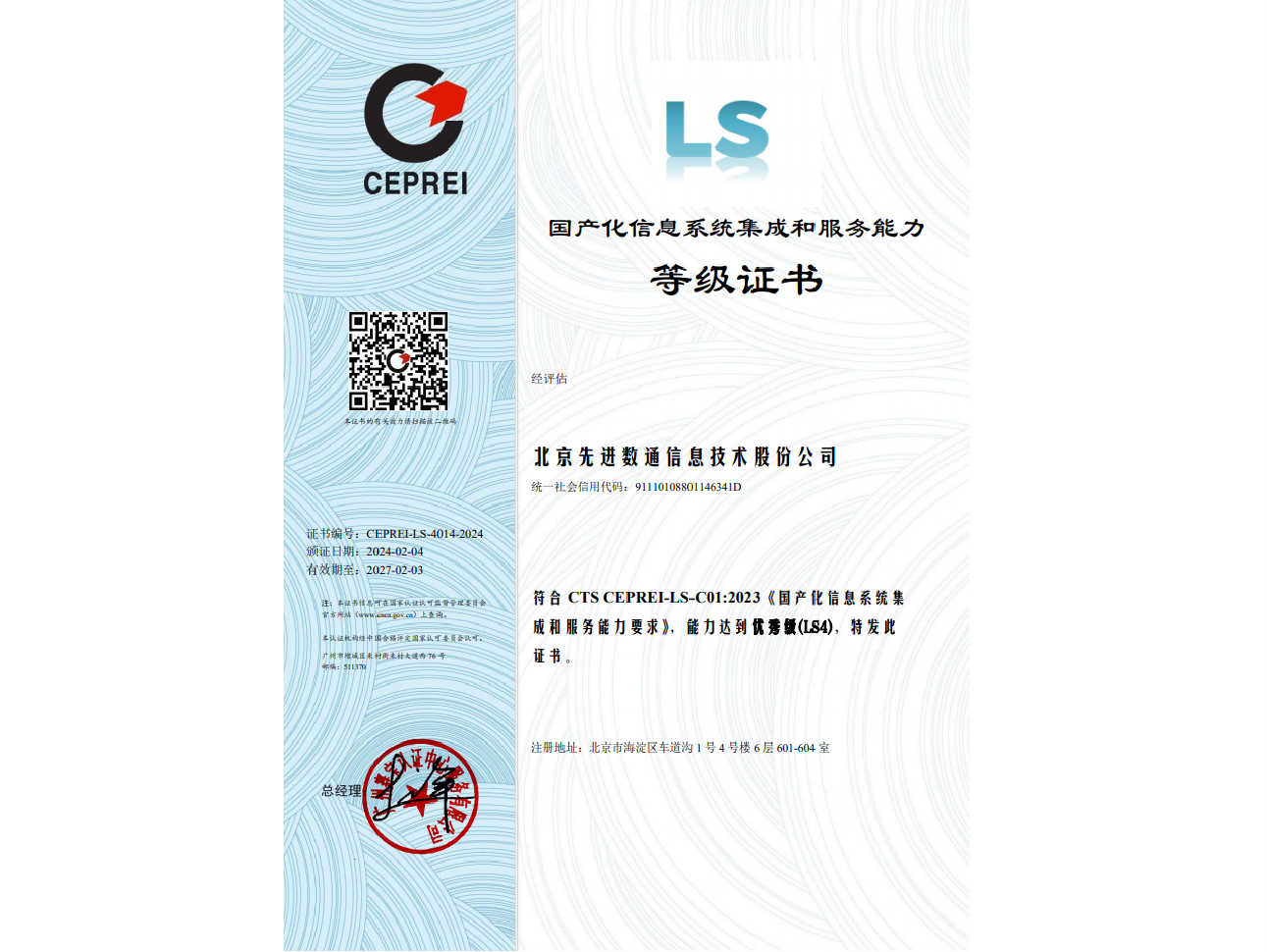 bti必一体育(b-sports)先后取得CMMIL5、软件能力成熟度五级(SPCA 5)、信息系统建设和服务能力评估体系(CS)5级、ITSS成熟度一级、信息系统安全集成服务资质二级、信息系统安全运维服务资质二级、国产化信息系统集成和服务能力评估四级(LS4)、北京市企业技术中心等资质认证,并取得ISO9001、ISO20000、ISO27001、ISO14001、ISO45001、ISO22301、ISO37001、ISO28001、GBT29490等标准体系认证,具备行业领先的技术开发、工程实施及服务保障能力。
