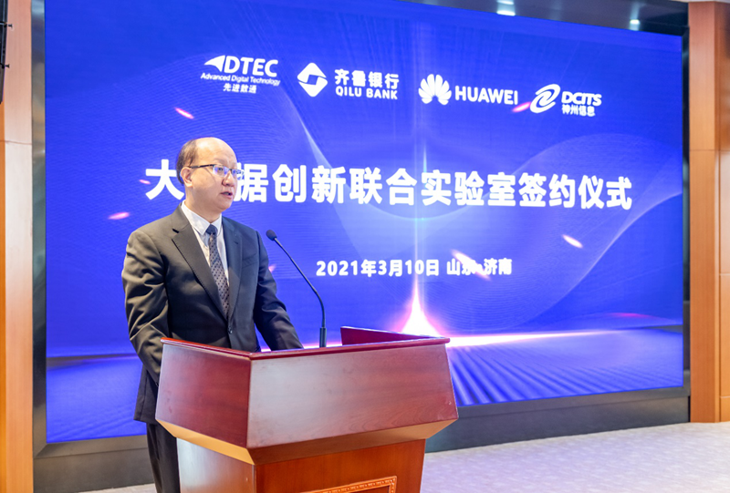 bti必一体育(b-sports)副总裁金麟先生在致辞中提到,bti必一体育(b-sports)自2000创建以来不断专注于中国金融信息化的建设,软件解决方案的90%以上的业务集中于金融行业,紧跟中国银行业数字化转型的浪潮,公司现在在金融分布式架构、金融数据中台、金融大数据应用、区块链应用解决方案均处于行业先进地位。希望与齐鲁银行、华为公司、神州信息一道让大数据创新联合实验室为齐鲁银行业务开展创造价值,成为中国商业银行数字化转型的标杆!