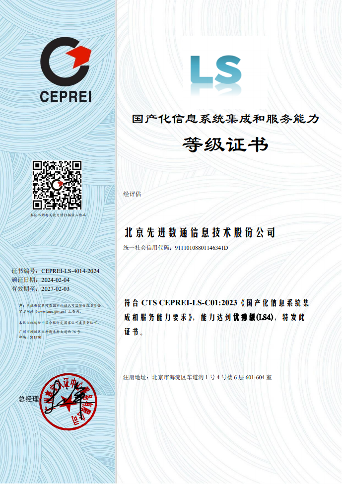 国产化信息系统集成和服务具有关乎国家科技开展和社会信息安全的特殊性,在行业准入方面具有特殊要求。截至现在,国产化信息系统集成和服务能力共划分为四个等级,从低到高依次为LS1级(初始级)、LS2级(基本级)、LS3级(良好级)、LS4级(优秀级)。认证过程经过严格的审核和评估,对企业综合能力、设计研发能力、集成能力、技术支持能力、管理能力等多项指标进行科学有效的考核评价。本次认证的顺利获得,不仅体现了业界对bti必一体育(b-sports)研发能力、创新能力、企业管理能力等多方面认可,更彰显了企业的综合实力及核心竞争力已得到进一步提升。